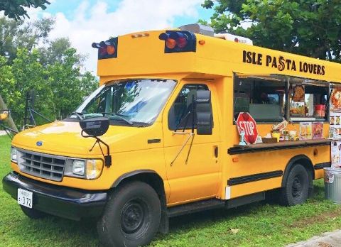 沖縄初の生パスタ専門キッチンカー。黄色のアメリカンスクールバスが目印です。名護の三角屋製麺所さんの沖縄そばを本格的な生パスタにアレンジしました。市販されていない生麺特有のもちもち食感を是非お試しください。パスタの茹で置きはせず、すべてご注文頂いた後、茹で立てでご提供しています。