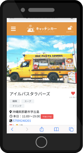 キャッチンカーに会員登録すれば、お気に入りのお店がマイリストに登録できる!好きなキッチンカーへまた行きたいときの追っかけ検索に便利!