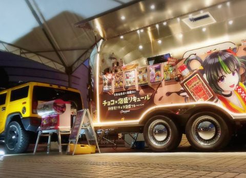 黄色いハマーとCOOLなトレーラーで沖縄のプロモーションを行っています。沖縄県のバーチャル観光大使を目指しているVtuberの根間ういと久米仙酒造がコラボして開発した「ちょこもり」(チョコレート泡盛リキュール)を題材にしたスイーツ。そして全米ナンバーワンプロテインブランド「マッスルテック」や世界ナンバーワンBCAA(必須アミノ酸)ブランド「エクステンド」を使った健康スムージーなどを提供しています。