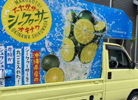 沖縄県産のシークワーサーをまるごと入れたシュワシュワーっとスッキリのどごし!ジュース、ゼリージュース、アルコールがございます。専用のかわいい3本入りお持ち帰りバッグもご準備しています。その他沖縄そばやサーターアンダーギーなど沖縄が満喫できるキッチンカーです。