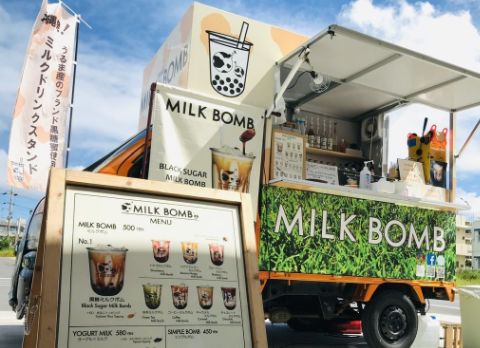 『かわいさ爆発おいしさ爆発』をコンセプトに、沖縄県うるま市を活動拠点としてキッチンカーでタピオカミルクドリンクを販売しています。当店こだわりの“黒糖ミルクボム“は沖縄県産黒糖を使用し、モチモチのタピオカとの相性が抜群!一口飲むと、黒糖の優しい風味とミルクのコク深い味わいとモチモチのタピオカを楽しめます。ぜひ一度お試しください。